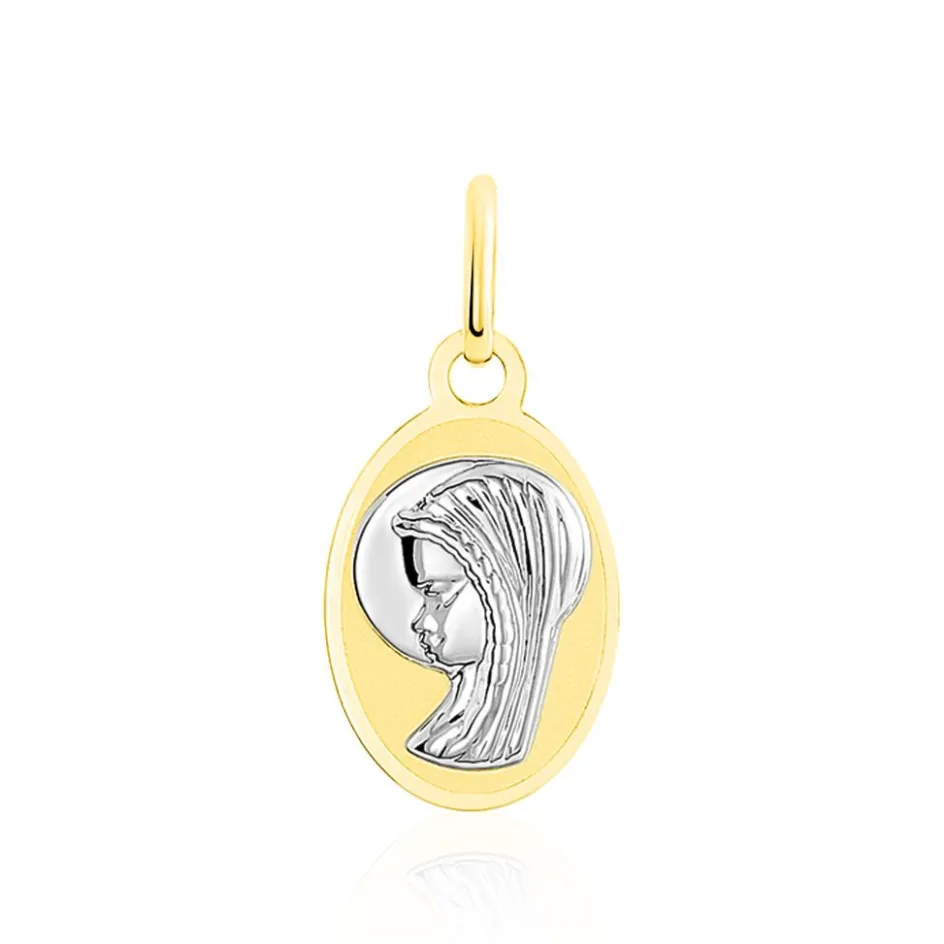 Medaille Or Bicolore 375/1000 Ovale Motif Vierge Marie