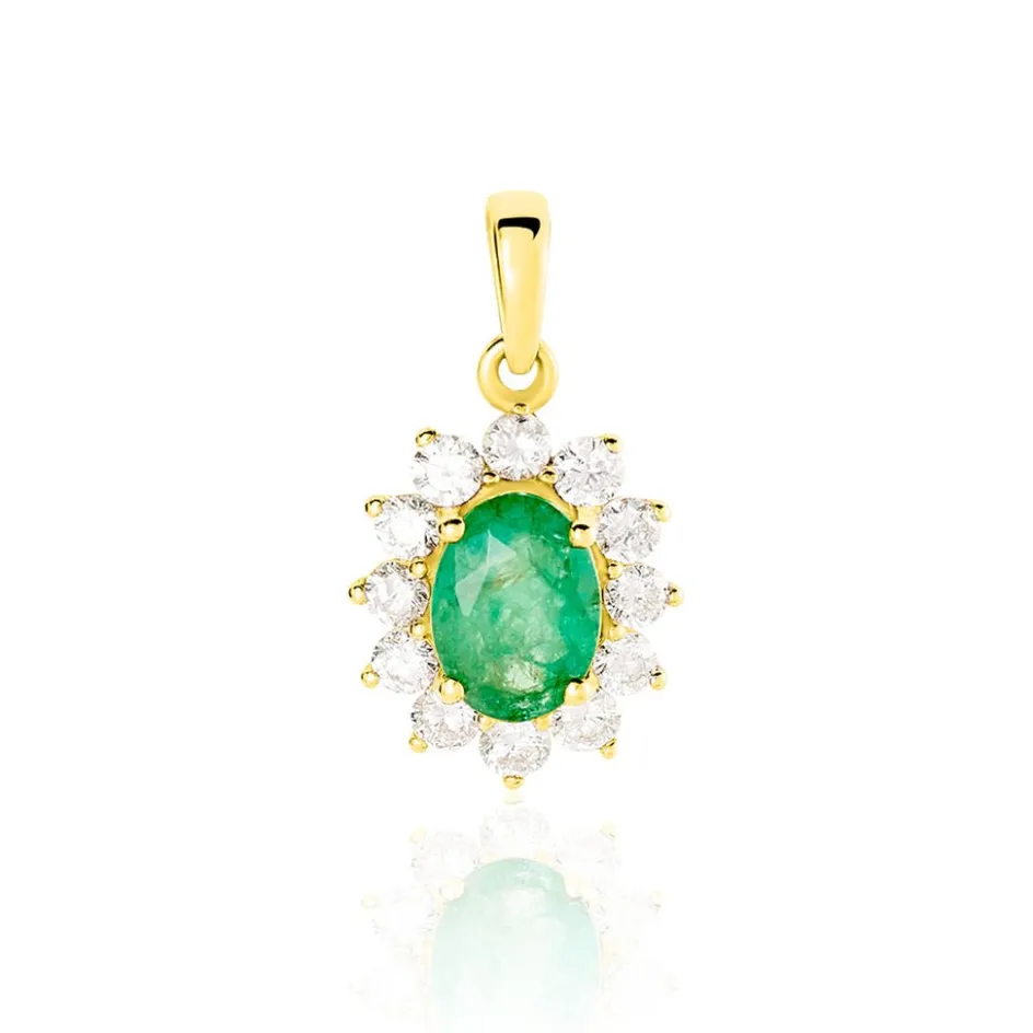 Pendentif Or Jaune 375/1000 Emeraude Simple Entourage Diamants Mm