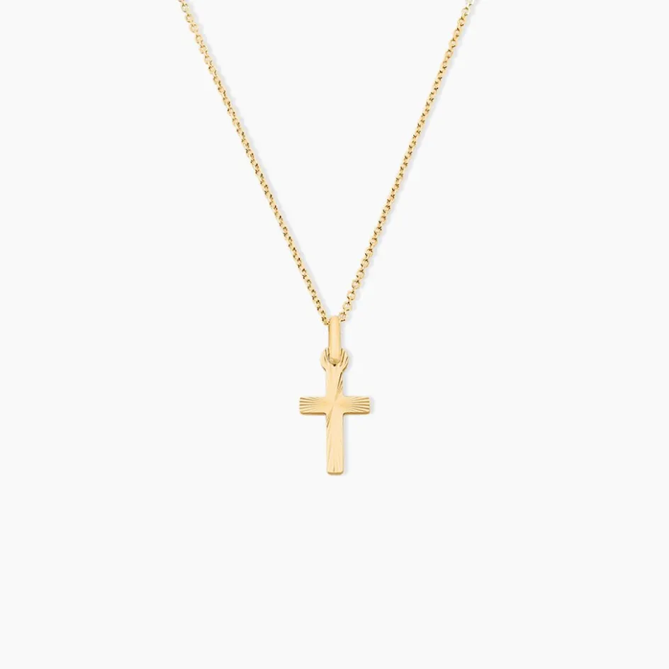 Pendentif Or Jaune 375/1000 Motif Croix Striée
