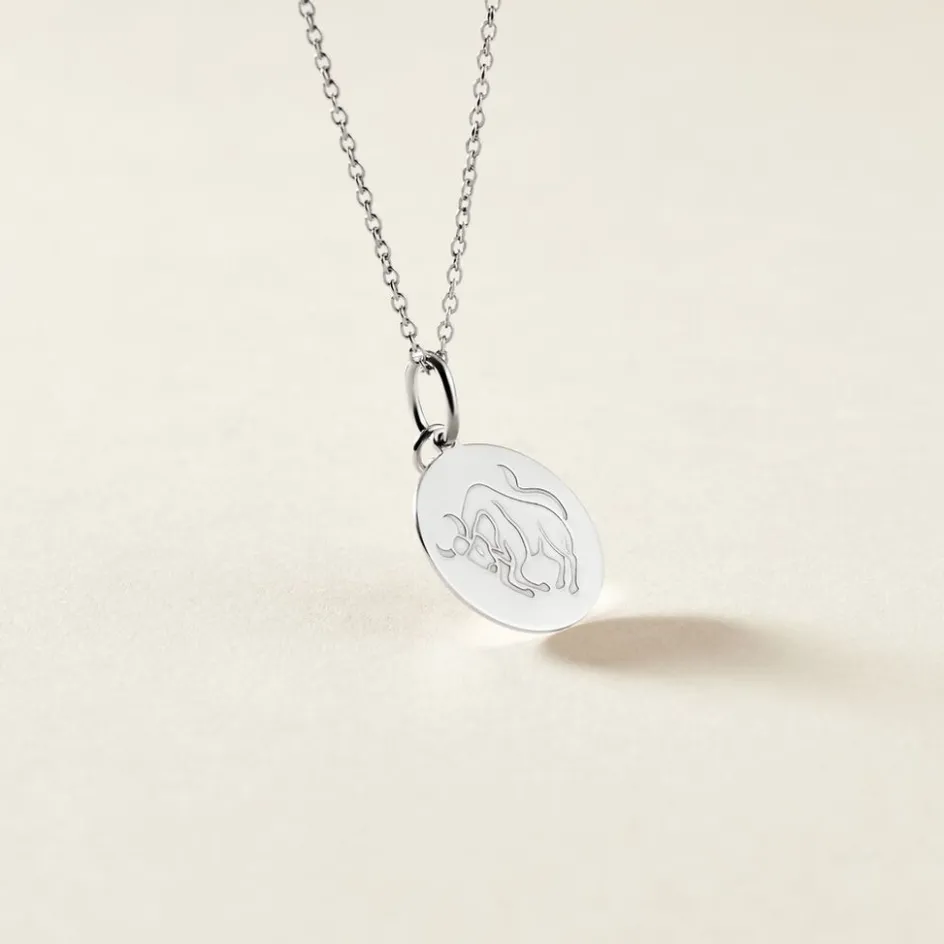 Pendentif Argent Blanc 925/1000 Medaille Ronde Motif Taureau