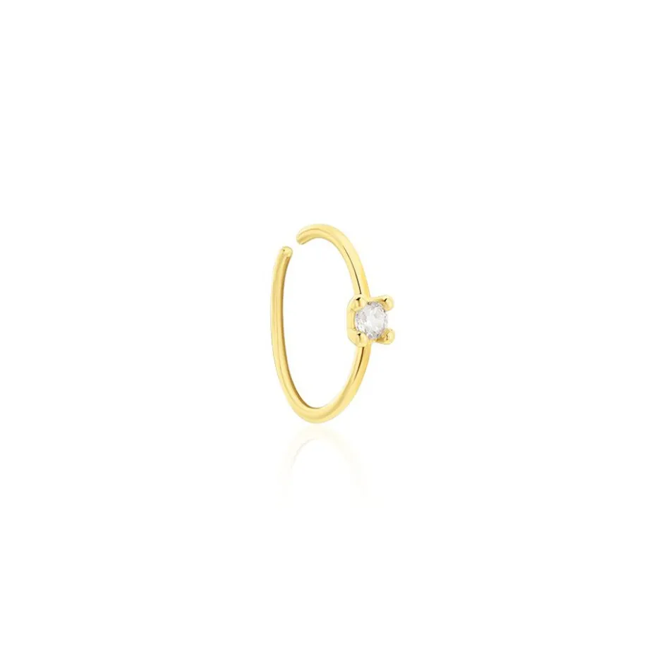 Piercing De Nez Or Jaune 375/1000 Anneau Avec 1 Oxyde De Zirconium Rond Serti Griffes Diametre 1cm