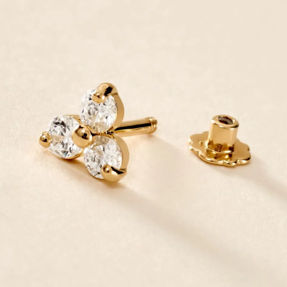 Piercing D’oreille Or Jaune 375/1000 Fleur Oxyde De Zironium 10mm