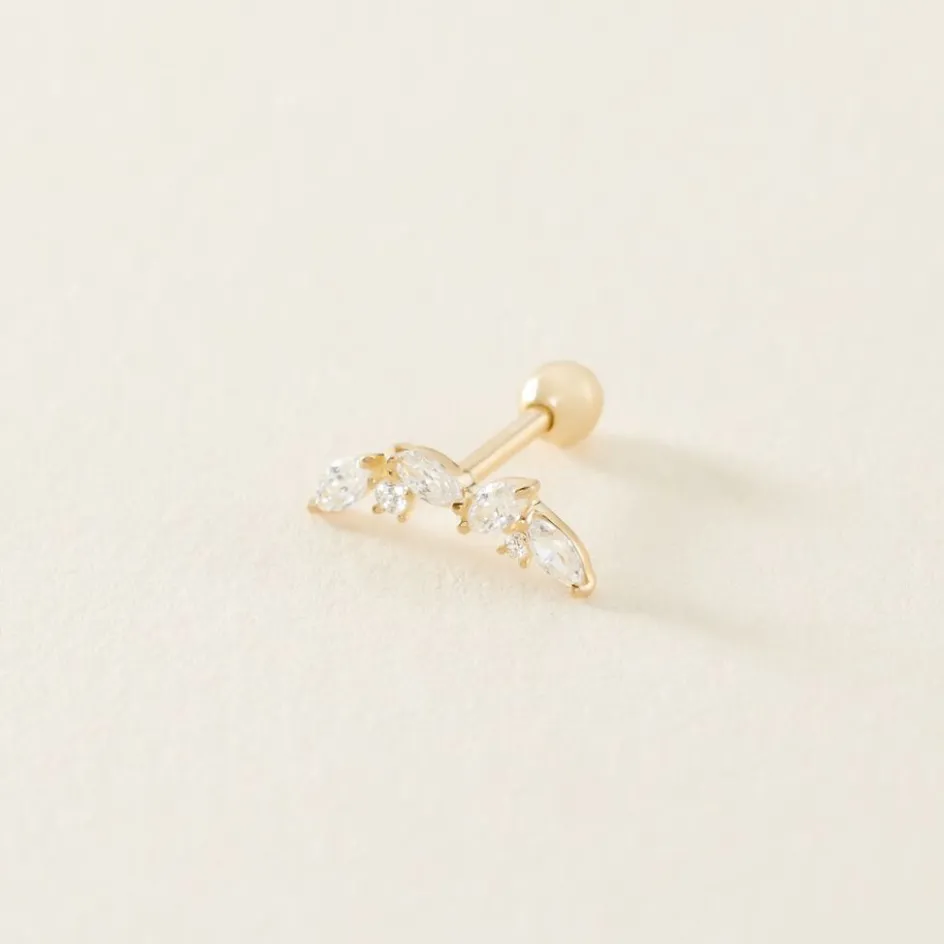 Piercing D’oreille Or Jaune 375/1000 Barette Multi Navettes Oxydes De Zirconium