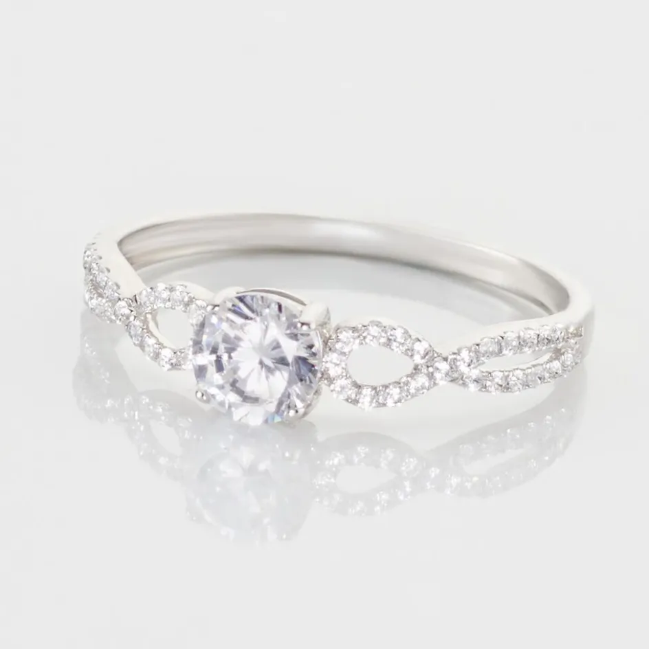 Solitaire Or Blanc 375/1000 Oxyde De Zirconium Accompagne Corps De Bague Entrelace