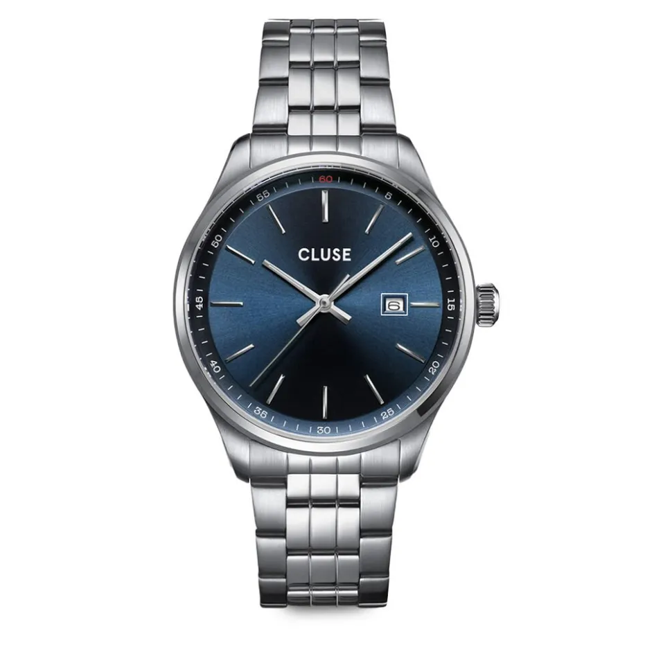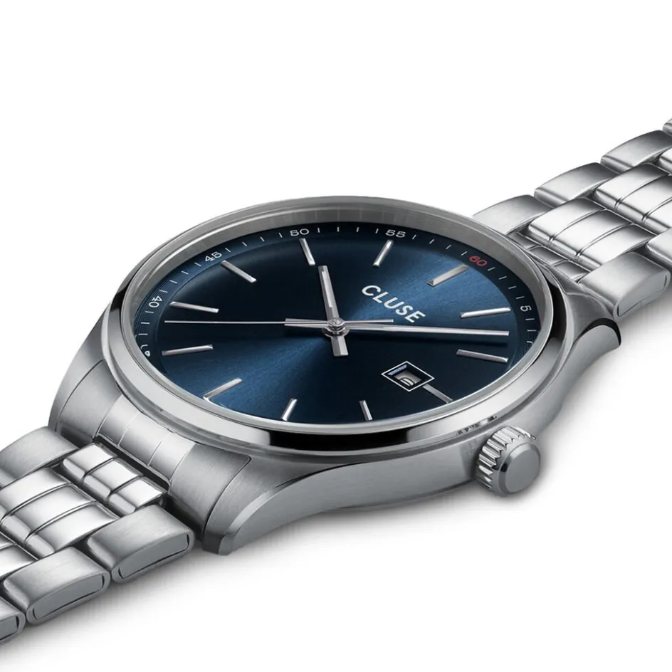 Montre Cluse Anthéor Acier Argenté Ronde Quartz 41mm Fond Bleu Bracelet Acier Argenté Cw20903