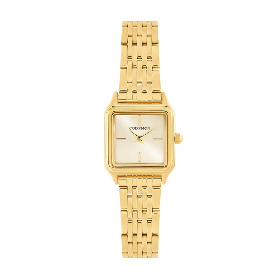 Coffret De Montre Codhor Gabrielle Alliage Doré Quartz Carre 23mm Fond Doré Bracelet Acier Doré + Bracelet Dore Double Chaine P101206-a