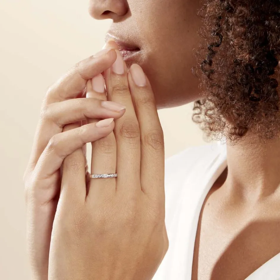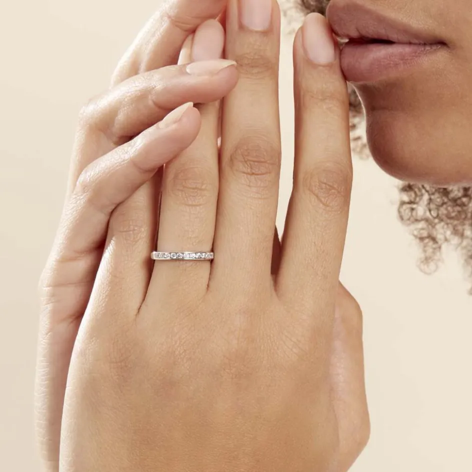 Demi Alliance Or Blanc 375/1000 Oxydes De Zirconium Ronds Serti Rail 2mm