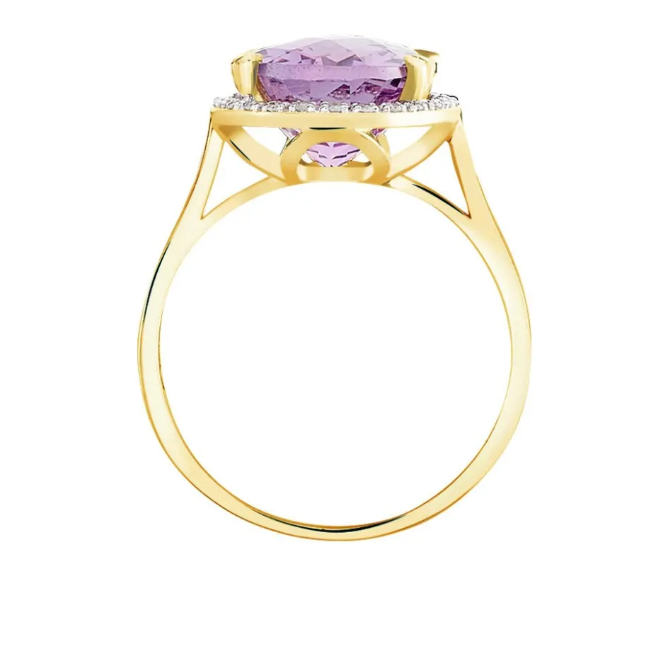 Bague Or Jaune 375/1000 Amethyste Violette 4.7cts Serti Micro Setting Et Oxydes De Zirconium
