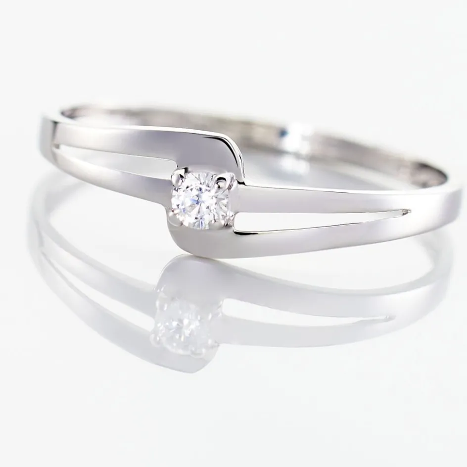 Bague Or Blanc 375/1000 Oxyde De Zirconium Serti Griffes
