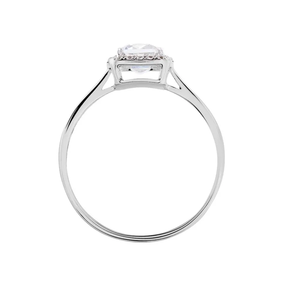 Bague Or Blanc 375/1000 Oxyde De Zirconium Taille Emeraude Entourage Oxydes De Zirconium