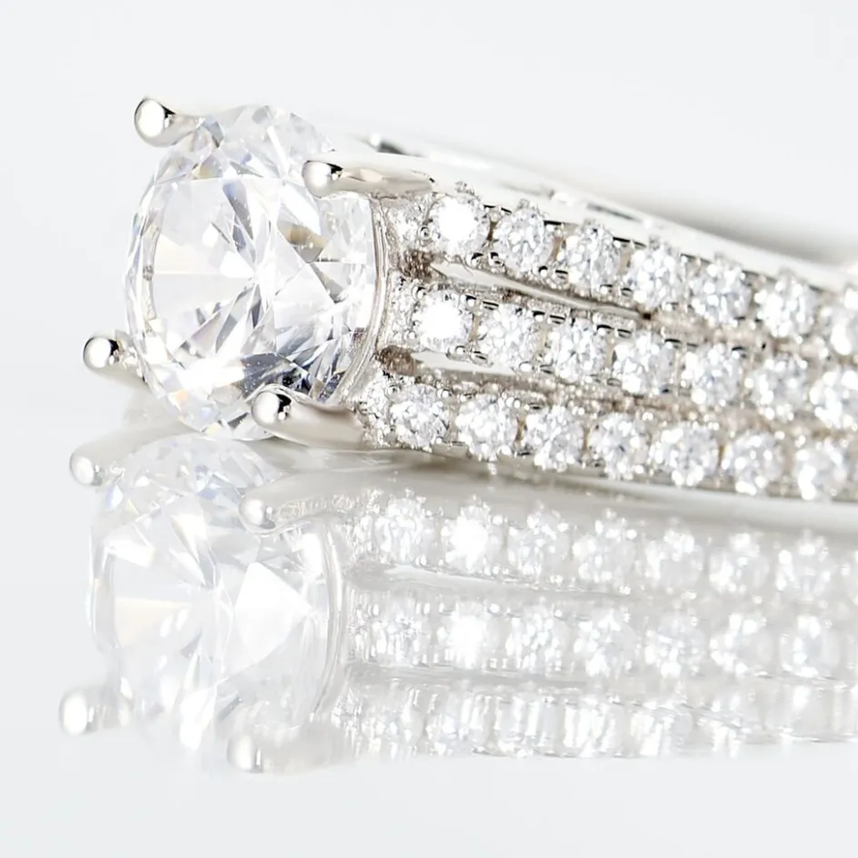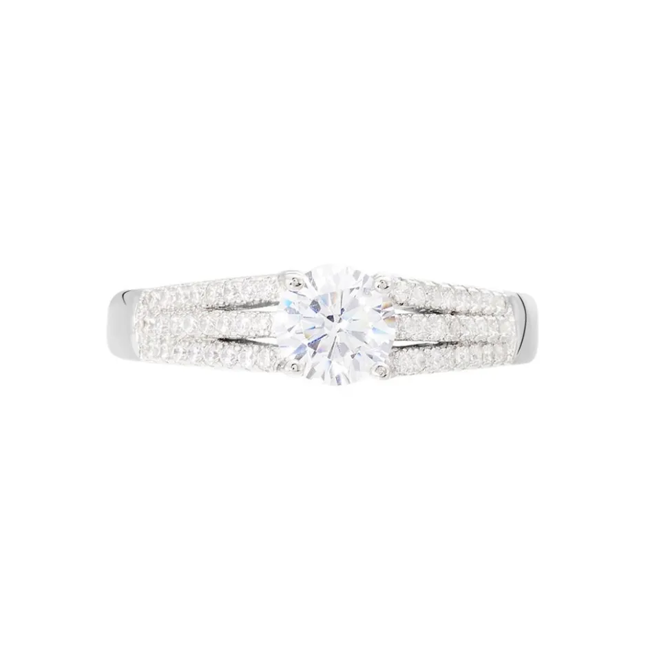 Bague Solitaire Argent Blanc 925/1000 Oxyde De Zirconium Accompagne Oxydes De Zirconium