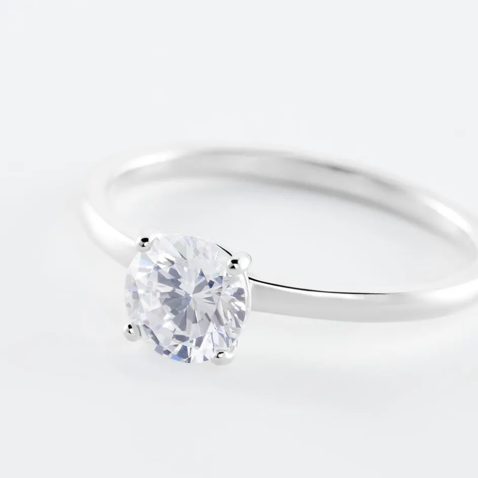 Bague Solitaire Argent Blanc 925/1000 Oxyde De Zirconium 4 Griffes 6mm