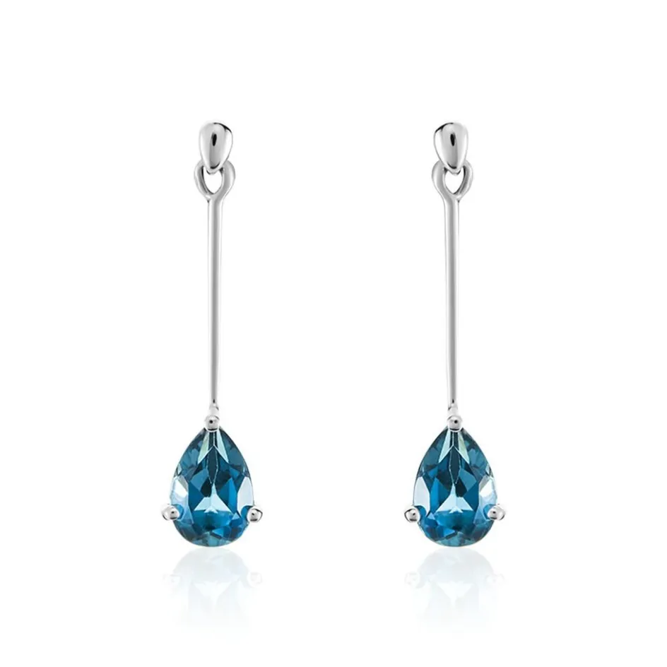 Boucles D’oreilles Pendantes Or Blanc 375/1000 Topaze London Blue Serti Griffes 1ct
