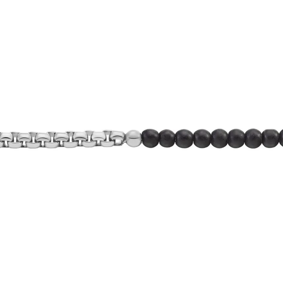 Bracelet Acier Inoxydable Blanc Boules Onyx Noir Maille Jaseron 21cm