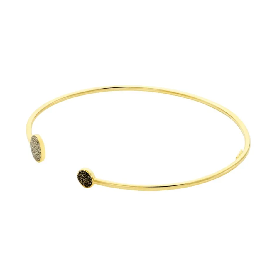 Bracelet Jonc Or Jaune 375/1000 Double Pastilles Glitter Dore Et Bronze