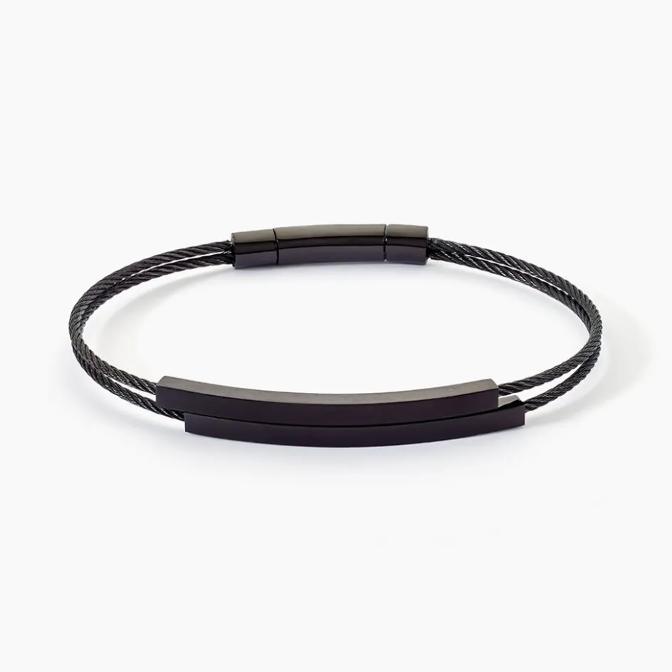 Bracelet Jonc Acier Inoxydable Noir Rectangle Cable 60*50Mm