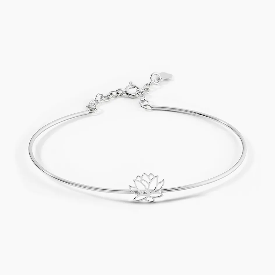 Bracelet Jonc Argent Blanc 925/1000 Fleur De Lotus Diametre 60mm