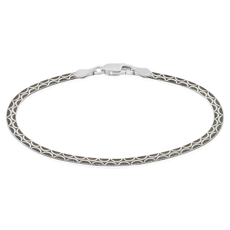 Bracelet Argent Bicolore 925/1000 Maille Heringbone Motifs Demi-cercles Largeur 3.1mm 18cm