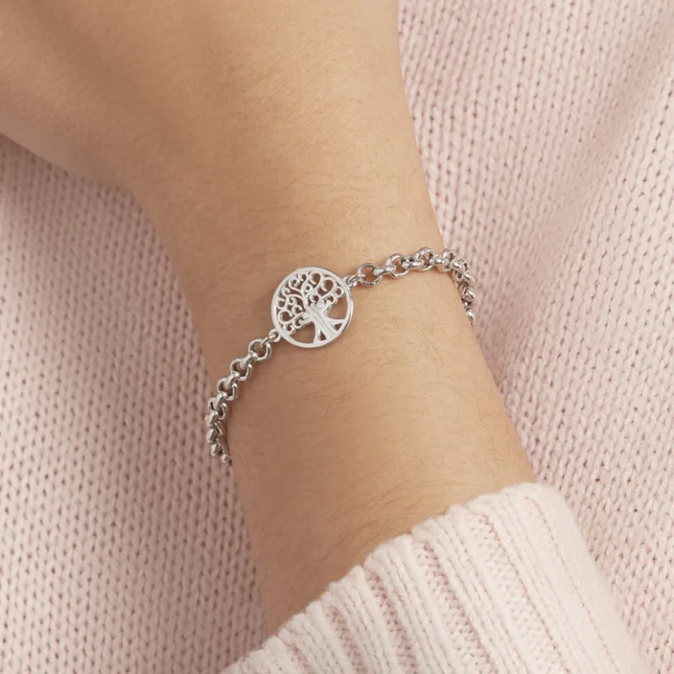 Bracelet Argent Blanc 925/1000 Arbre De Vie Maille Jaseron 18.5cm