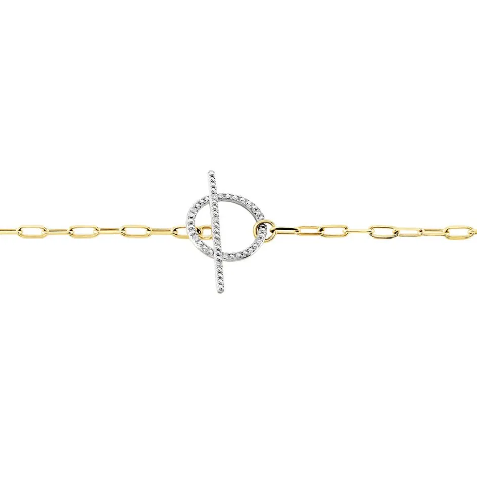 Bracelet Or Jaune 375/1000 Cercle Ajouré Diamants 0.023cts Maille Cheval 17cm
