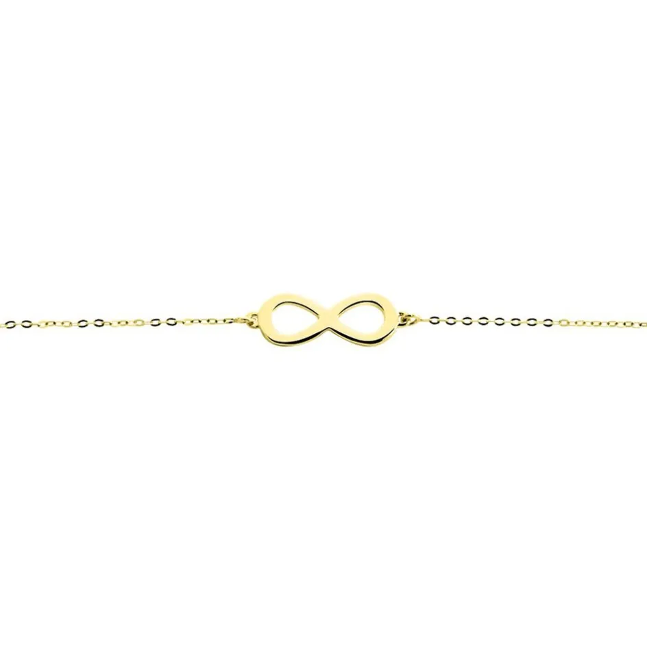 Bracelet Or Jaune 375/1000 Motif Infini Maille Jaseron 18cm