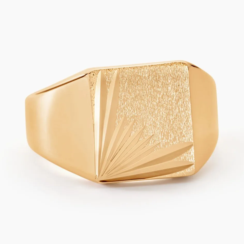 Chevaliere Plaqué Or Jaune Plateau Carre Lisse Soleil