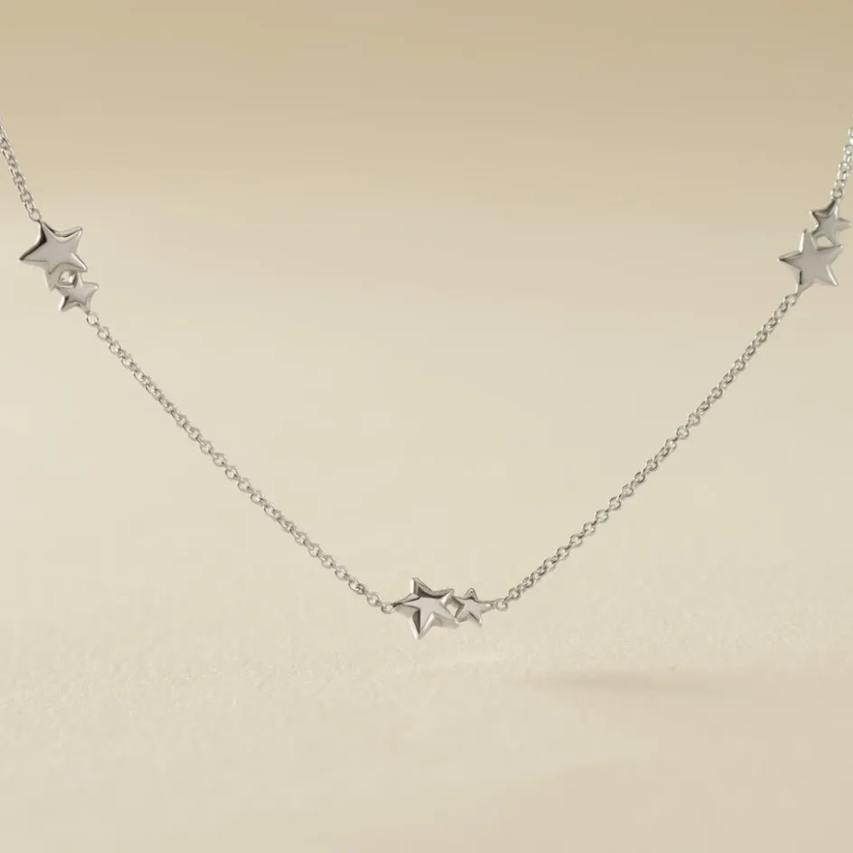 Collier Argent Blanc 925/1000 Duo Etoiles Multiple Maille Forcat 42cm