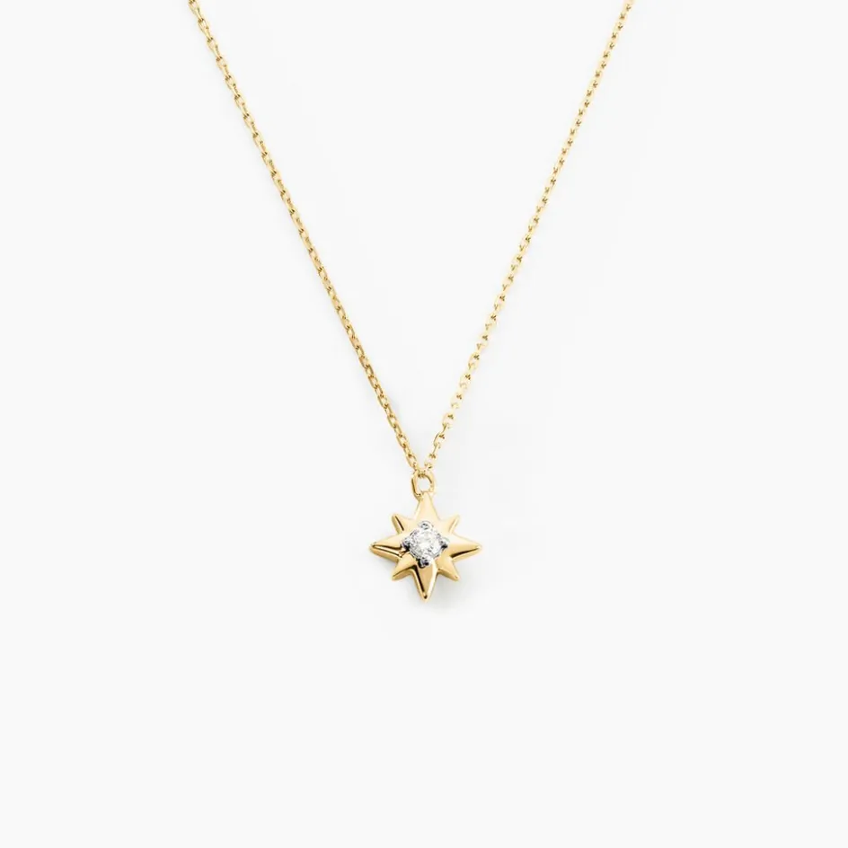 Collier Or Jaune 375/1000 Motif Etoile Oxyde De Zirconium Central 42cm