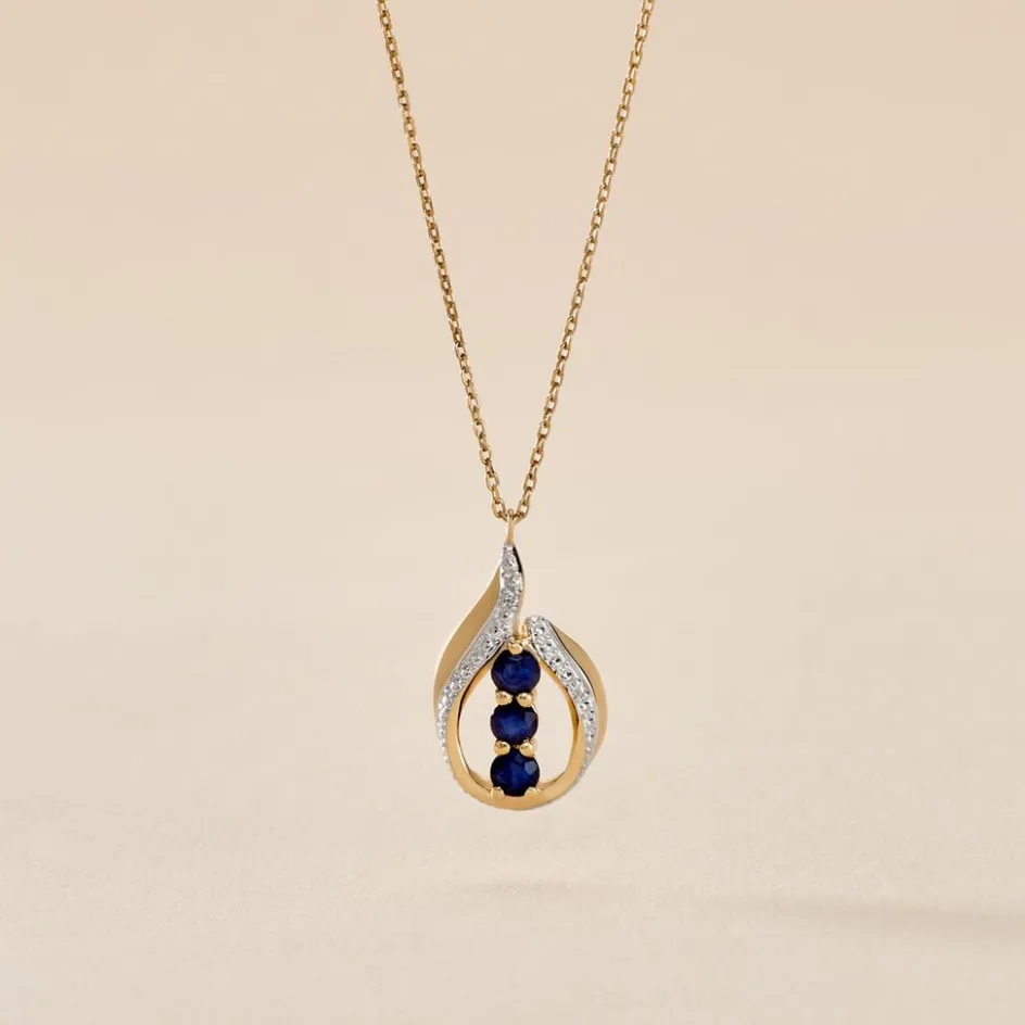Collier Or Jaune 375/1000 Trilogie Saphirs Et Diamants 43cm