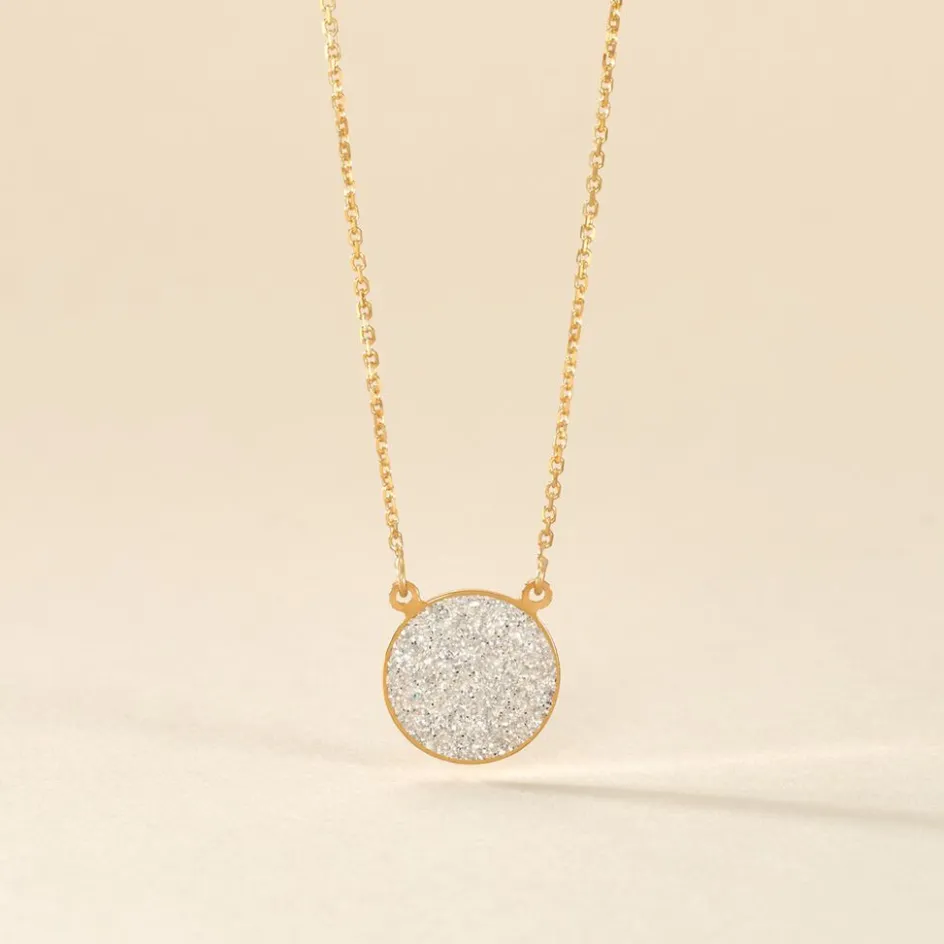 Collier Or Jaune 375/1000 Pastille Glitter Silver Maille Jaseron 42+3cm