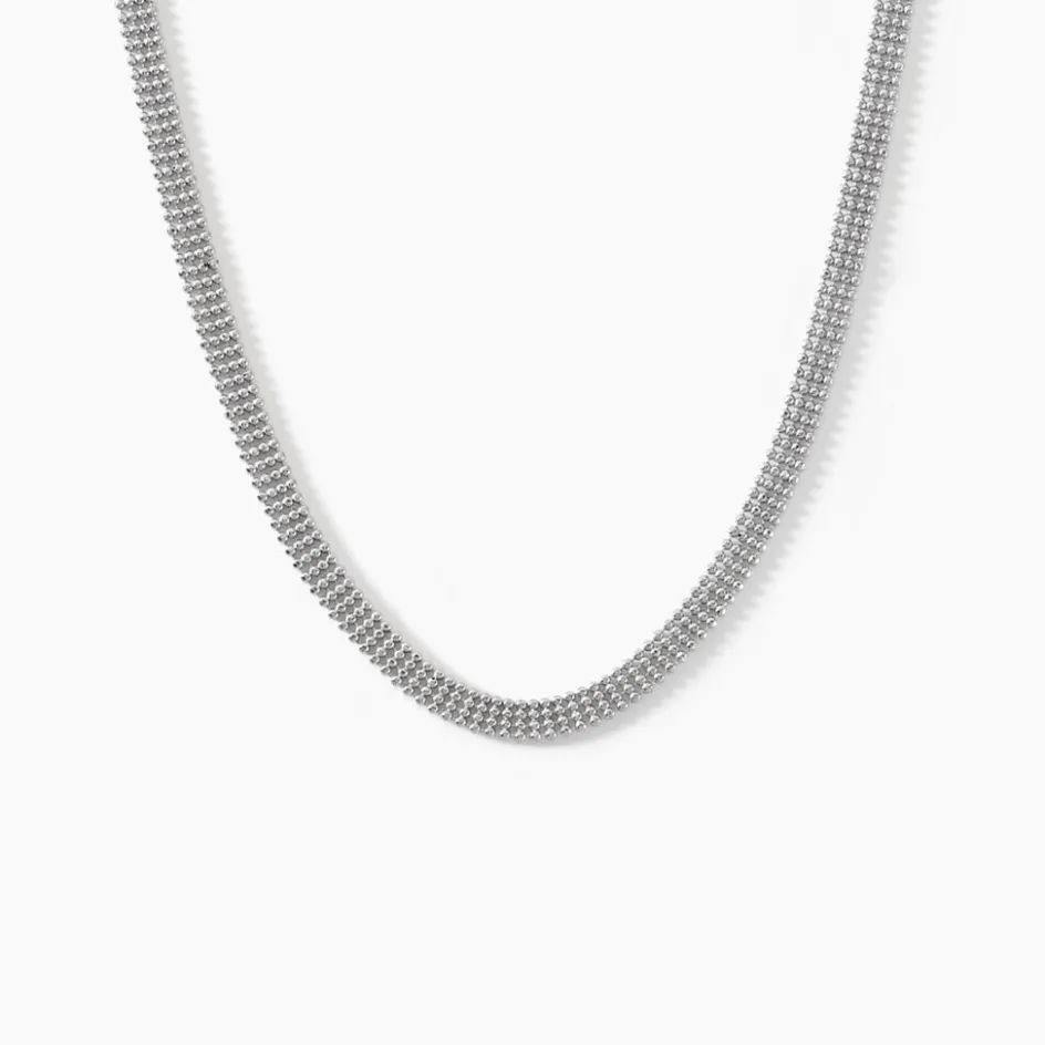 Collier Argent Blanc 925/1000 Multi Fils Entrelacés Maille Tresse Largeur 3.8mm 42+3cm