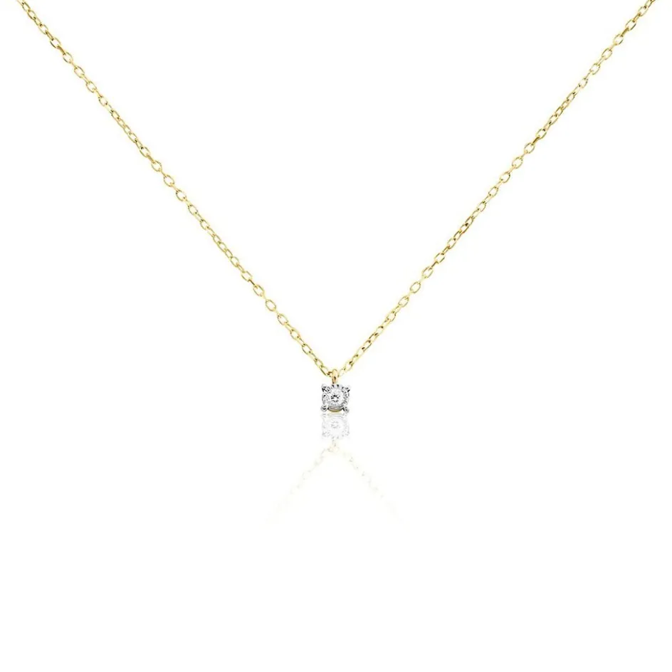 Collier Or Jaune 375/1000 Solitaire Diamant 0.02cts Maille Forçat 42cm
