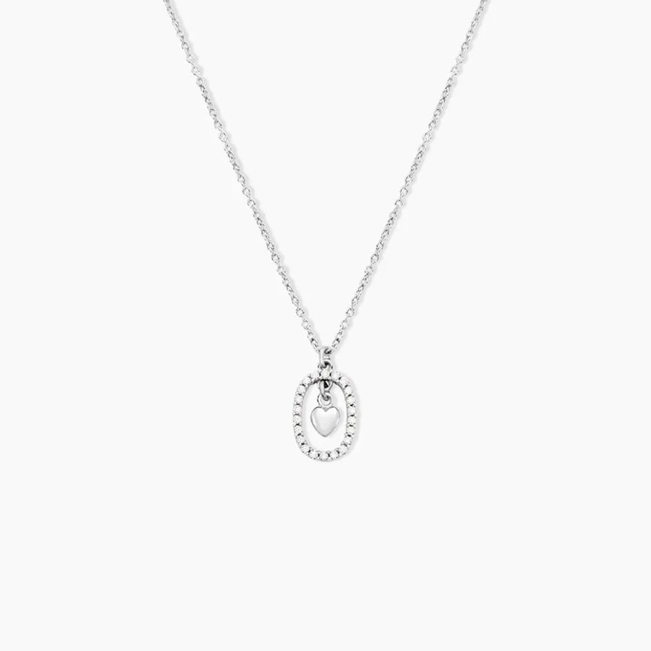 Collier Argent Blanc 925/1000 Ovale Et Pampille C艙ur Oxydes De Zirconium Maille Forçat 42+3cm