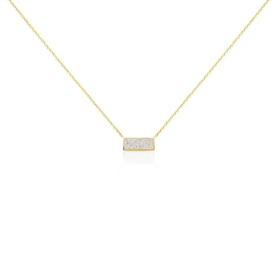 Collier Or Jaune 375/1000 Rectangle Glitter Argente Maille Jaseron 40+2cm
