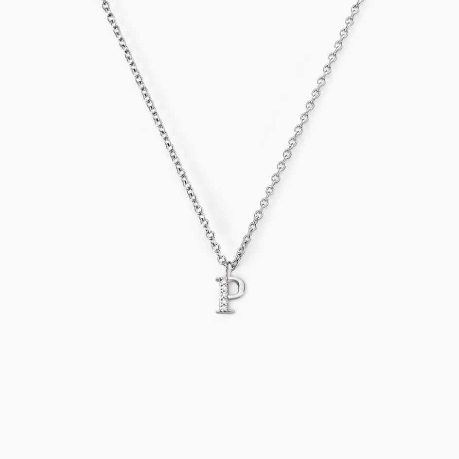 Collier Argent Blanc 925/1000 Lettre P Semi Pavage Oxydes De Zirconium Maille Forçat 38+3cm