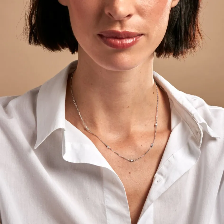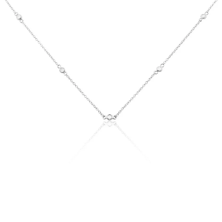 Collier Argent 925/1000 Oxydes De Zirconium Serti Clos Maille Forcat 42cm