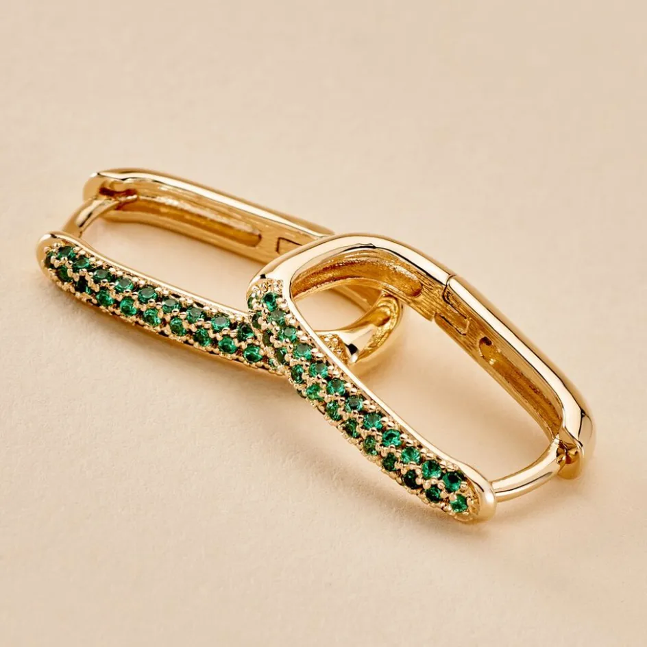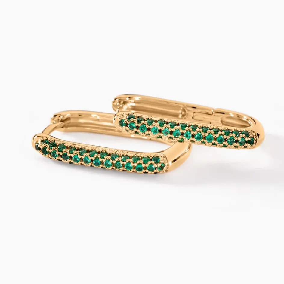 Créoles Plaque Or Rectangulaires Pavages Spinelles Synthétiques Verts Diamètre 18*13mm