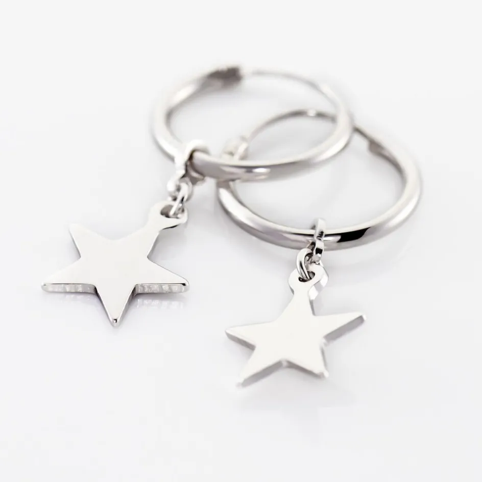 Creoles Argent Blanc 925/1000 Pampilles Motifs Etoiles Diametre 12mm