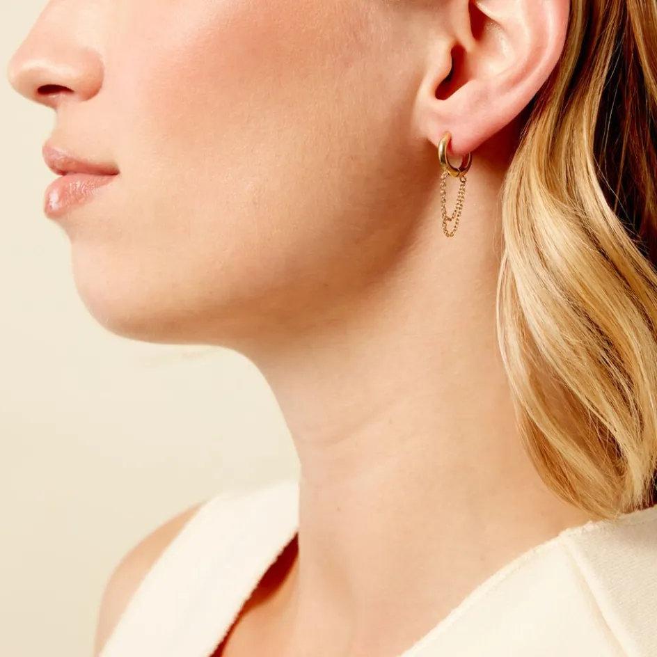 Créoles Acier Inoxydable Jaune Double Chaine Forcat Diamètre 12Mm