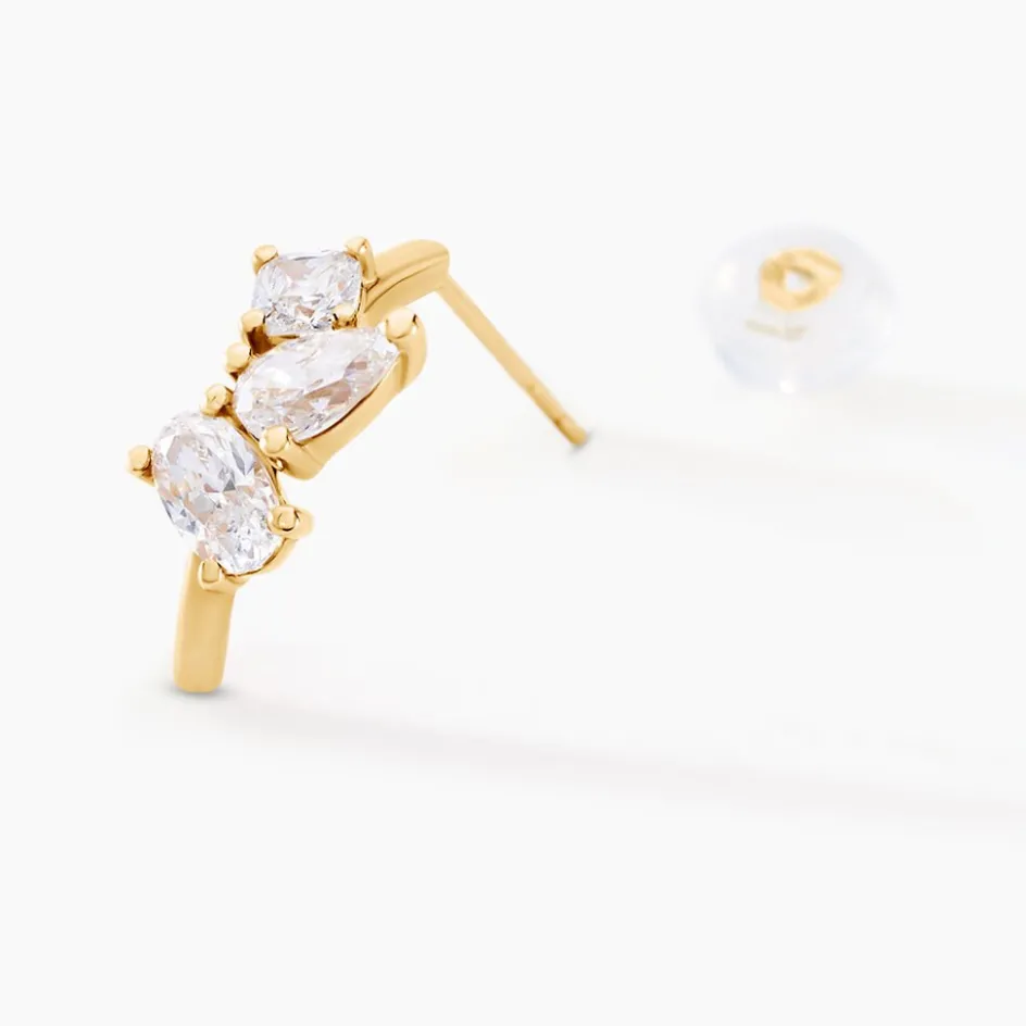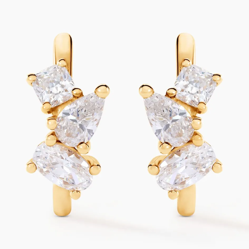 Demi Creoles Or Jaune 375/1000 Multipierres Oxyde De Zirconium Ovale Poire Coussin Serti Griffes