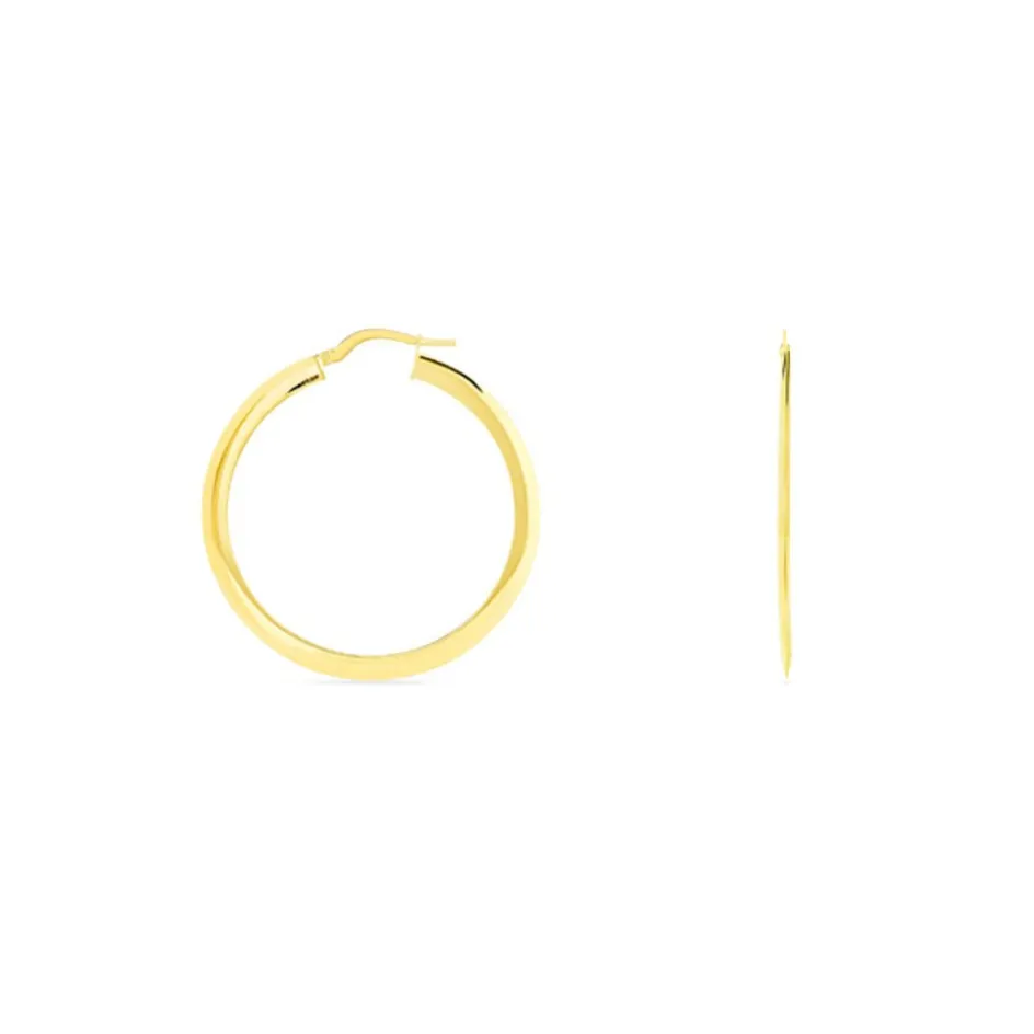Créoles Or Jaune 375/1000 Fil Triangle Lisse Largeur 0.5mm Diamètre 30mm