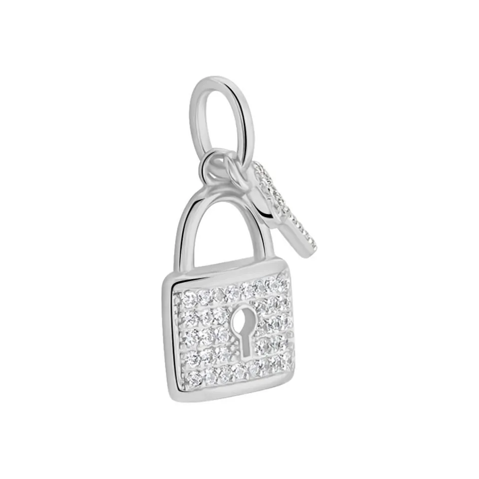 Pendentif Argent Blanc 925/1000 Cadenas Pavage Oxydes De Zirconium