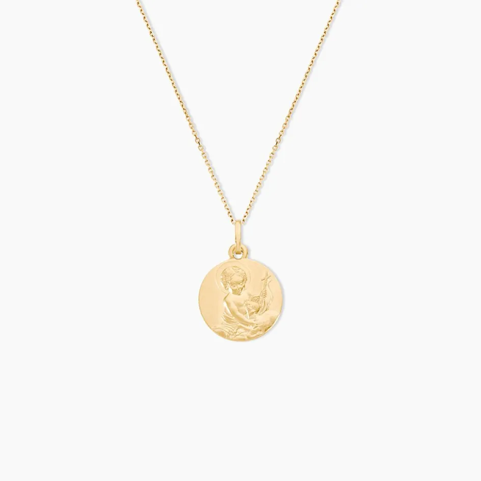 Medaille Or Jaune 750/1000 Saint Jean- Avec Un Agneau Effet Mat Diametre 16mm