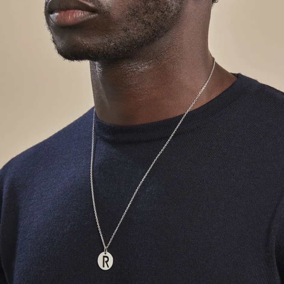 Pendentif Argent Blanc 925/1000 Pastille Lettre R Diametre 18mm