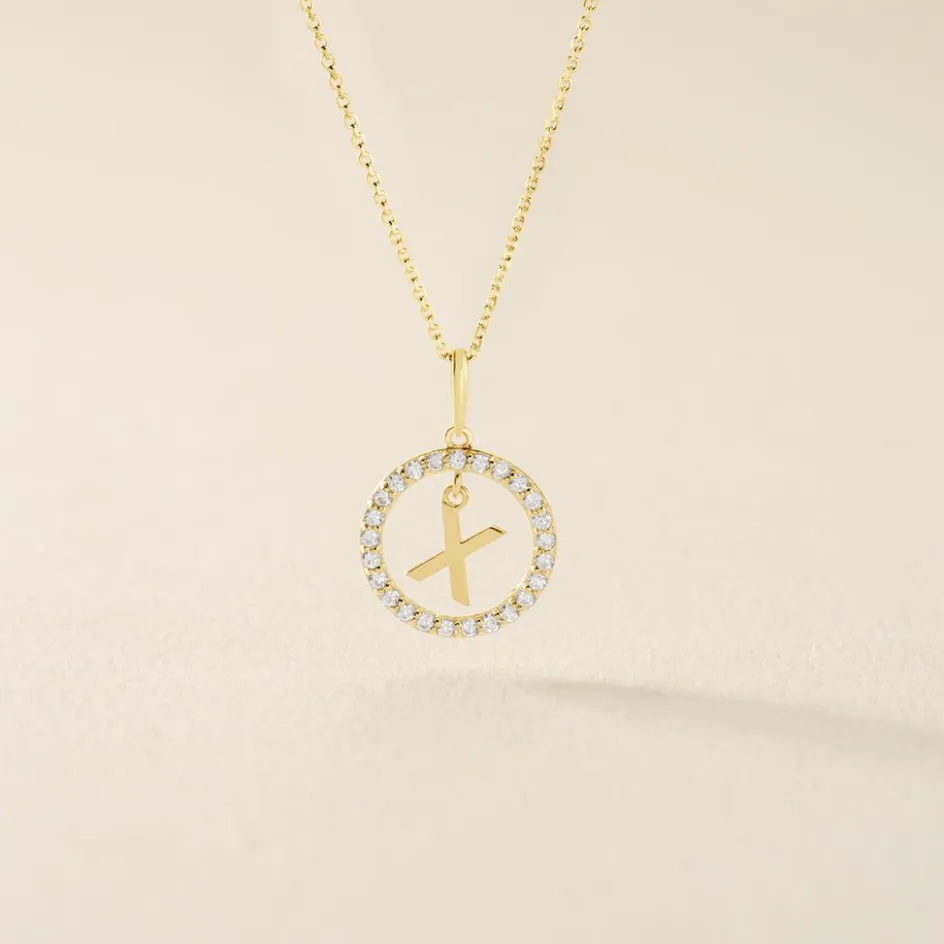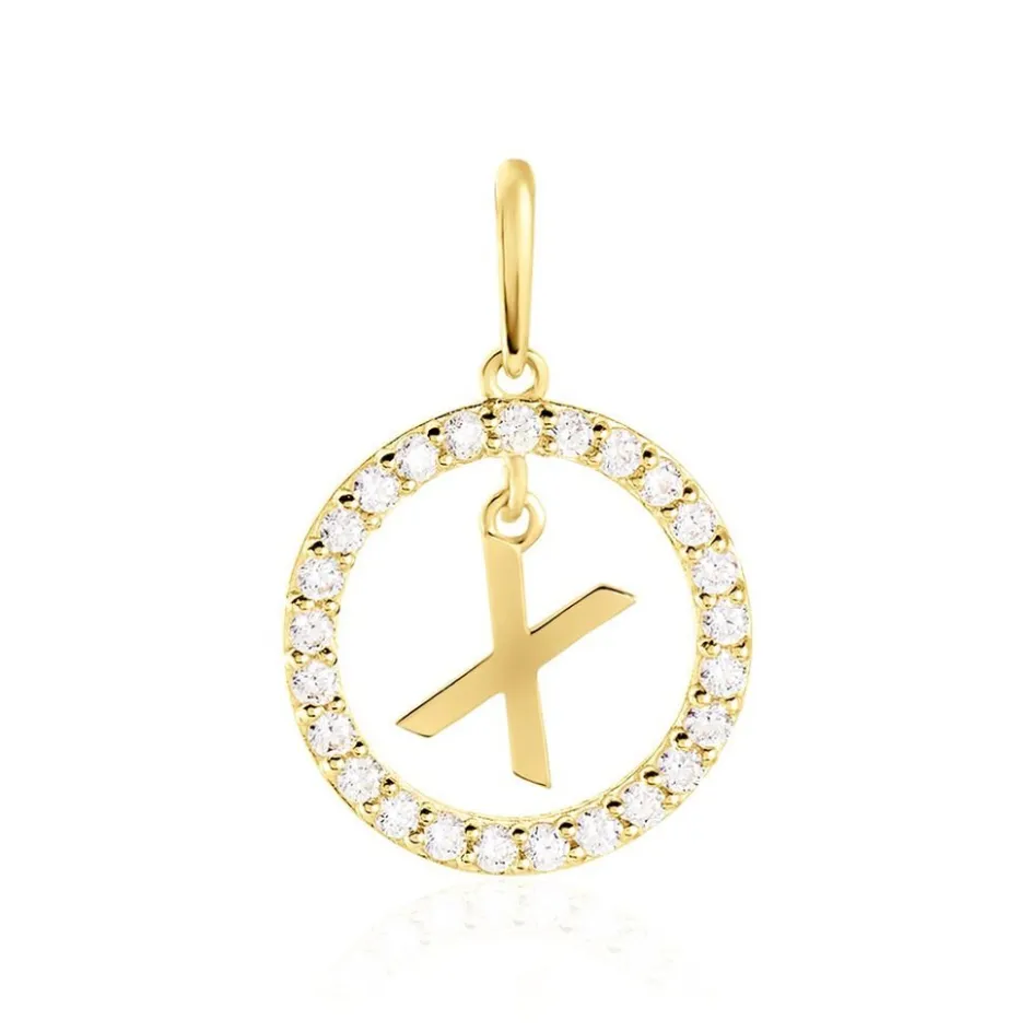 Pendentif Lettre X Or Jaune 375/1000 Entourage Oxyde De Zirconium Blanc