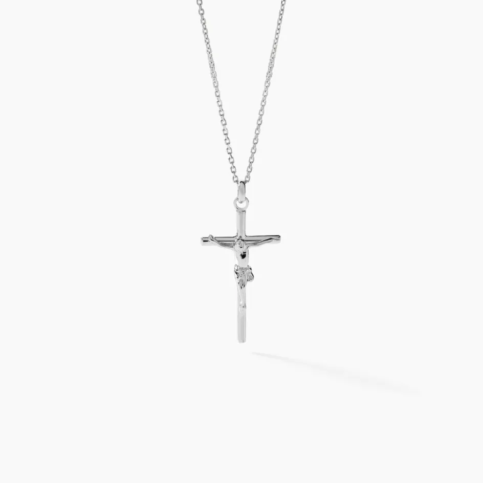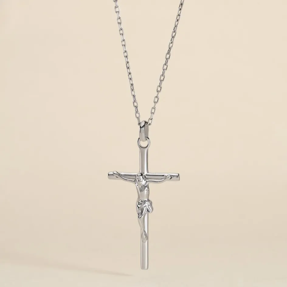 Pendentif Argent Blanc 925/1000 Croix Christ