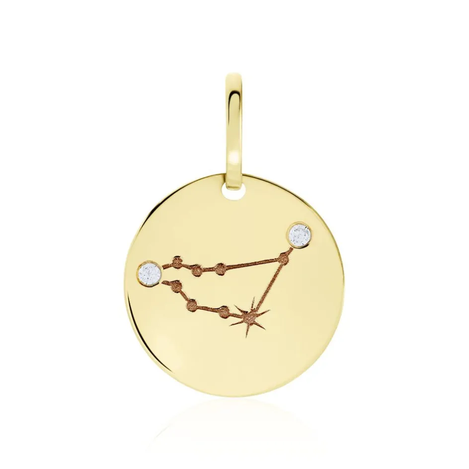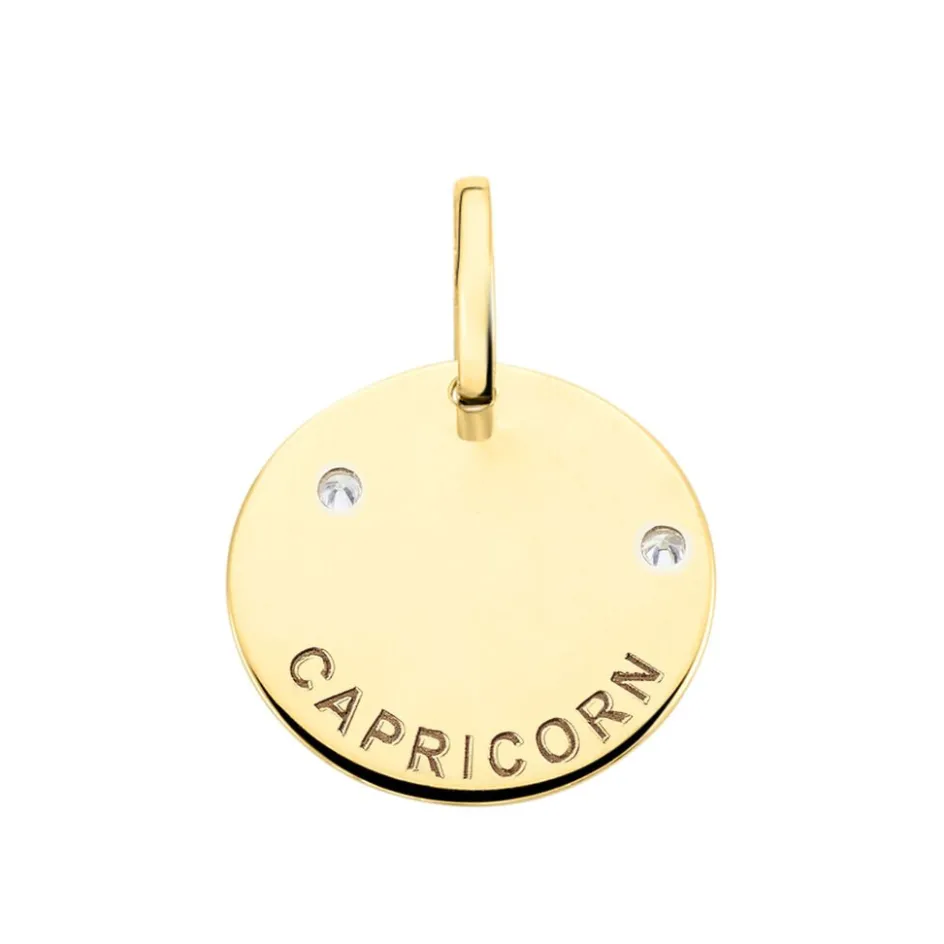Pendentif Or Jaune 375/1000 Zodiaque Capricorne Oxyde De Zirconium 0.045cts Serti Grains