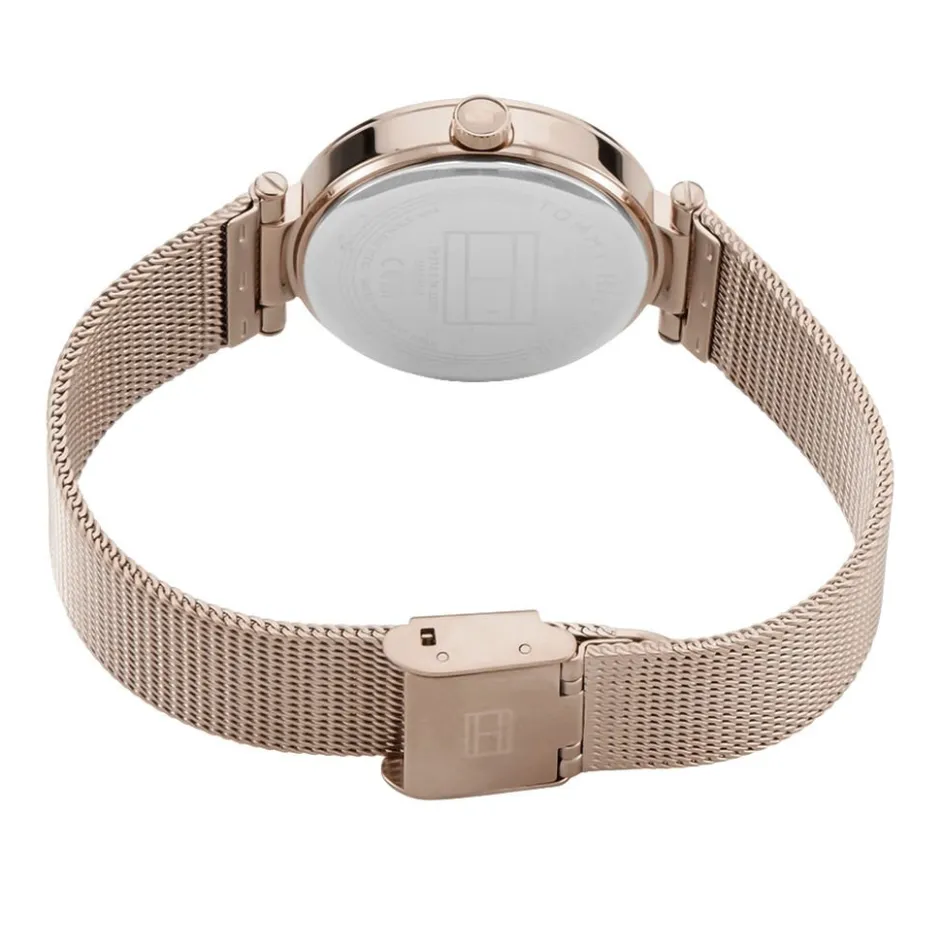 Montre Tommy Hilfiger Lynn Acier Rose Ronde Quartz 32mm Fond Rose Bracelet Maille Milanaise Acier Rose 1782508