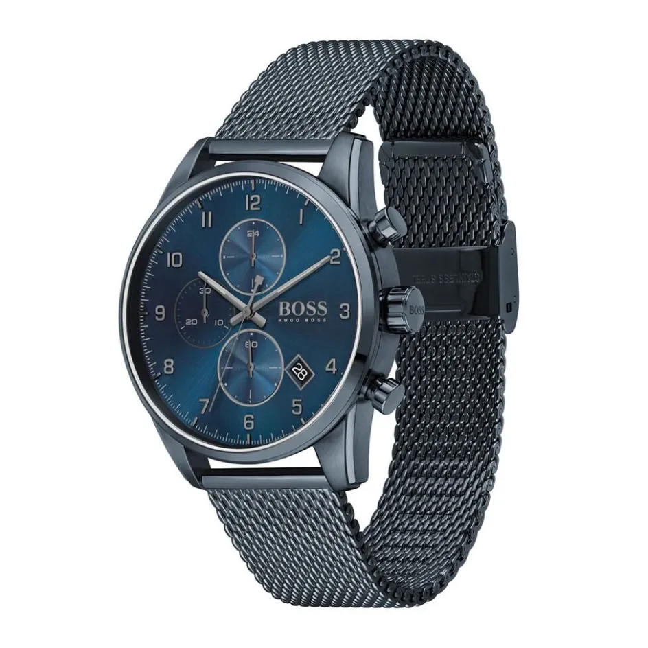 Montre Boss Skymaster Acier Bleu Ronde Quartz Chronographe 44mm Fond Bleu Bracelet Acier Bleu 1513836