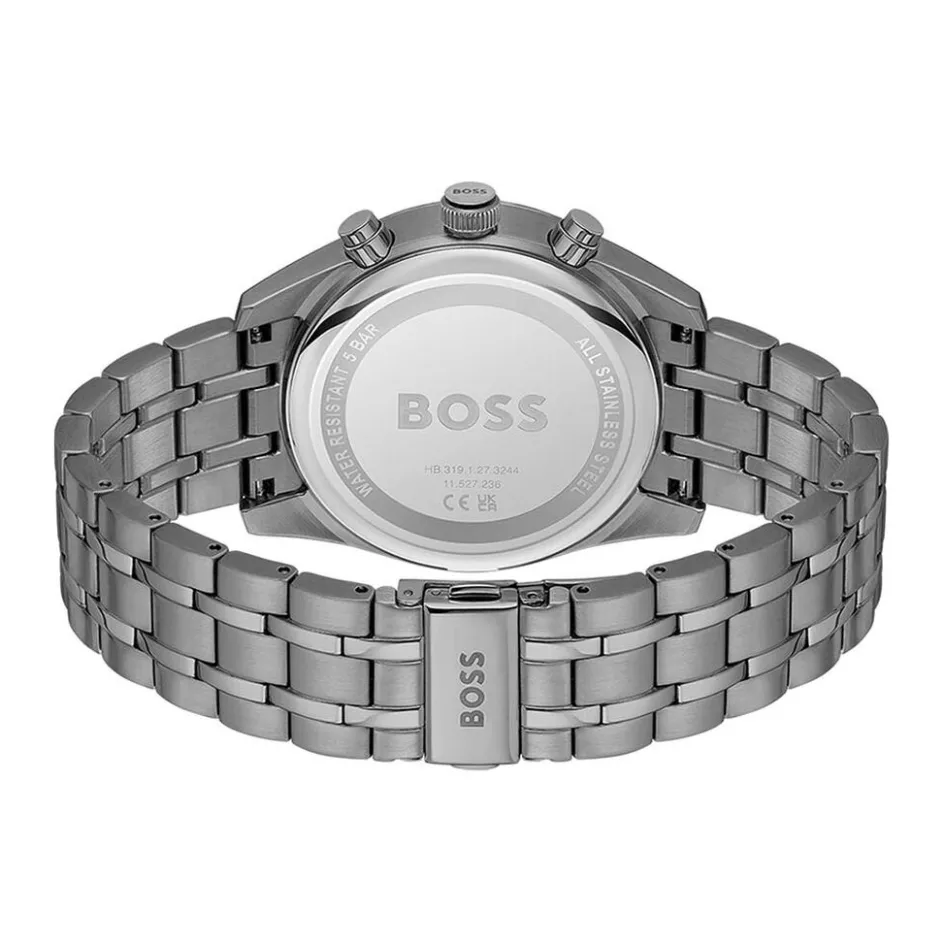 Montre Boss Skytraveller Acier Gris Ronde Quartz Chronographe 44mm Fond Noir Bracelet Acier Gris Maillons 1514153